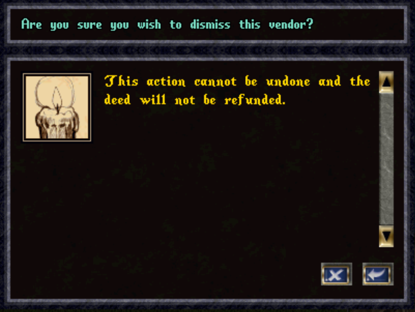 Added a confirmation warning when attempting to dismiss a vendor stating that the deed will be lost.