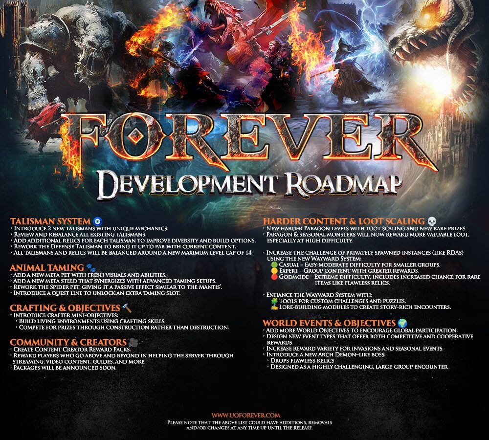 Here’s what we at Ultima Online Forever have coming down the development highway. We know many of you have been wondering what our plans are- So here it is!
