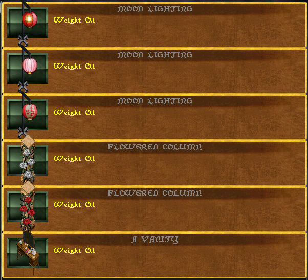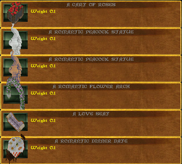 Returning items like the Cart of roses and peacock statues now turn with a deco tool.