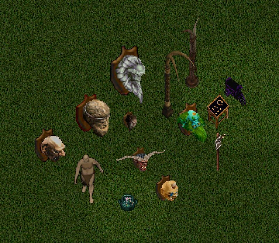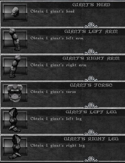 Collect pieces of a dismembered granite giant and make a magnificent giant statue.